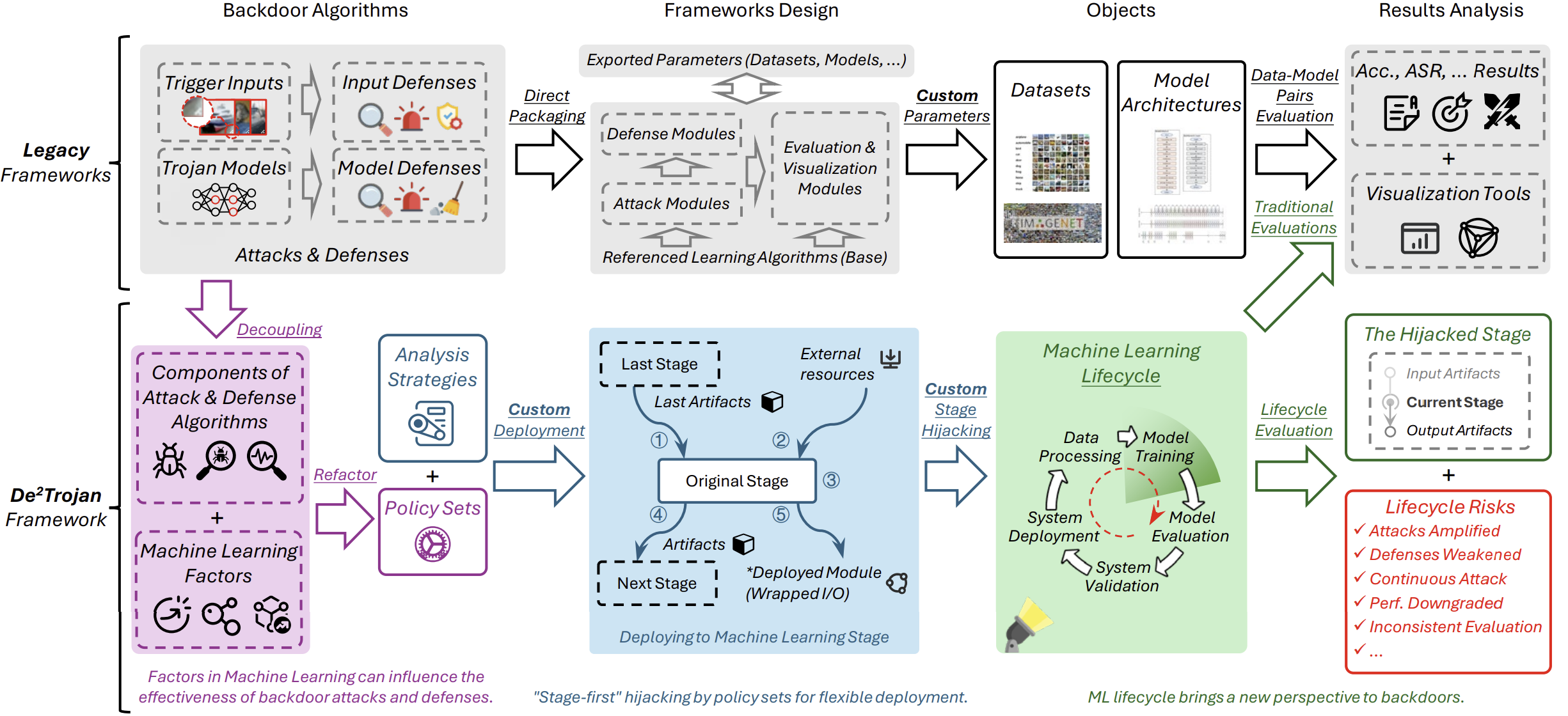 De2Trojan: Deployable Trojan Analysis Tool and Benchmark for the Machine Learning Lifecycle via Decoupling